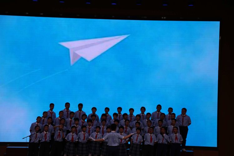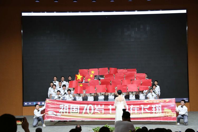 鳥兒擁抱藍天,高山期待晴空,我們也憧憬屬于自己的那片天空。七(8)班帶來合唱曲目《我的天空》。