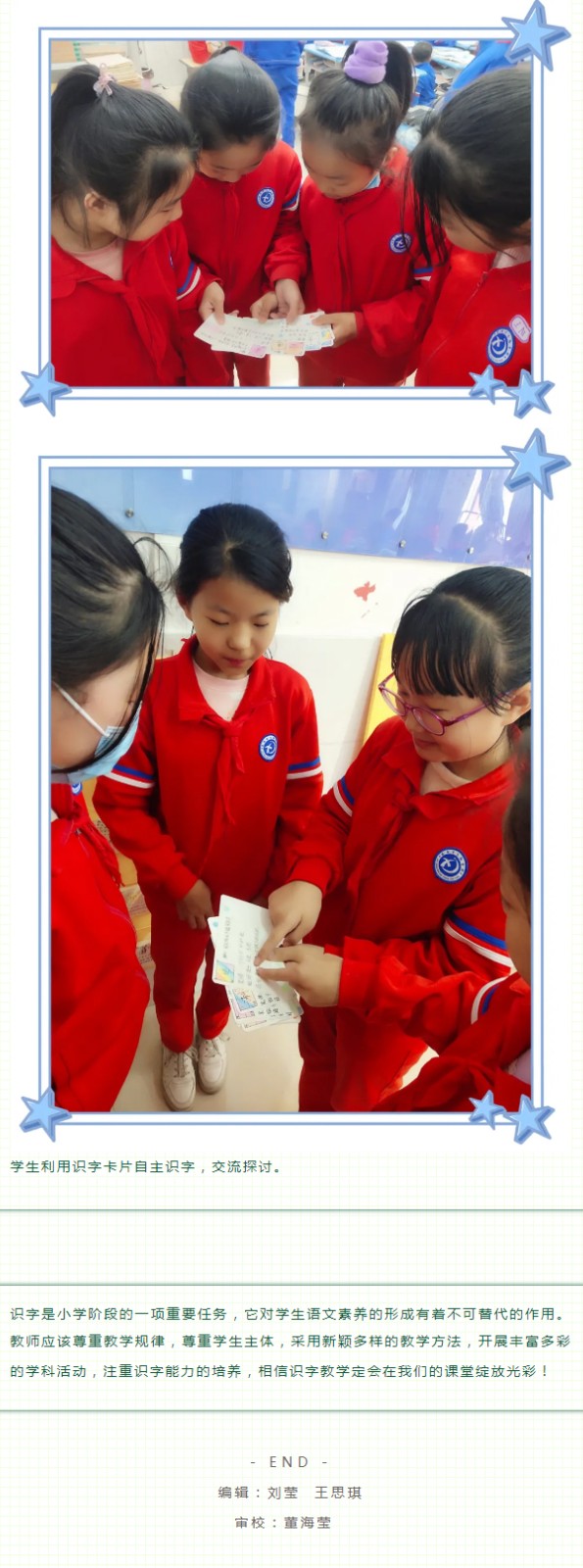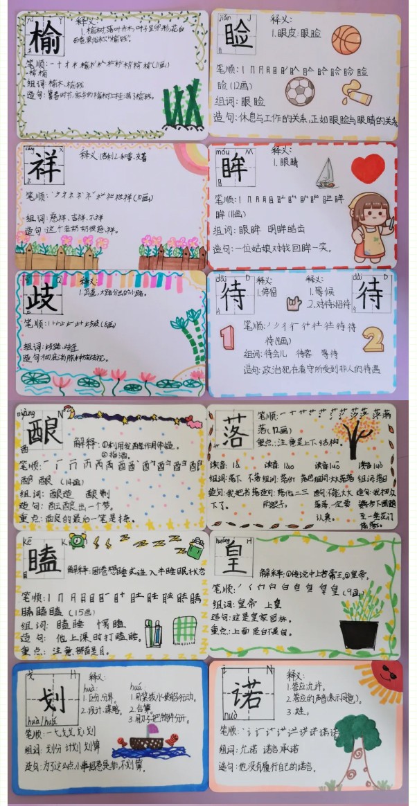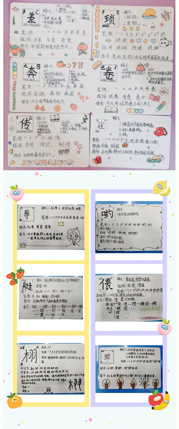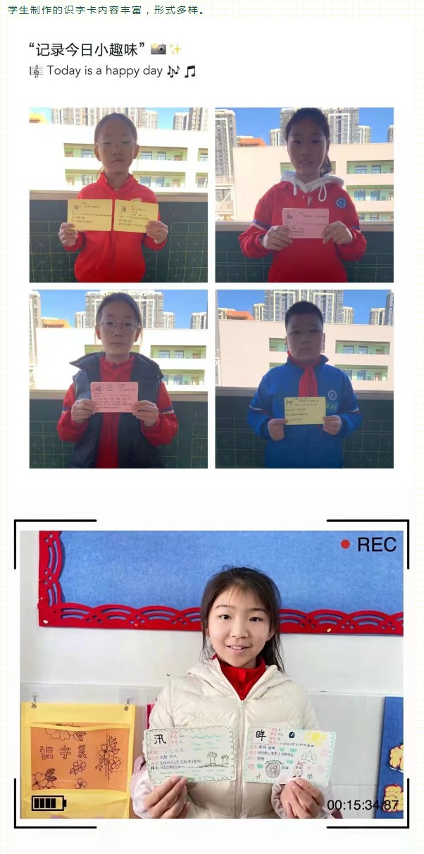 識字是學習文化的起點,是閱讀寫作的基礎。識字的多少、快慢直接關系到學生的閱讀能力和寫作能力的強弱。小學生只有具有一定的識字量才能比較順利地進行閱讀和寫作,拓展知識面,提高學習的能力。為積極落實國家“雙減”政策,提高學生的識字能力,我校五年級學生自制了識字卡和識字袋,形成了班級的識字角,在閑暇之余進行自主識字。