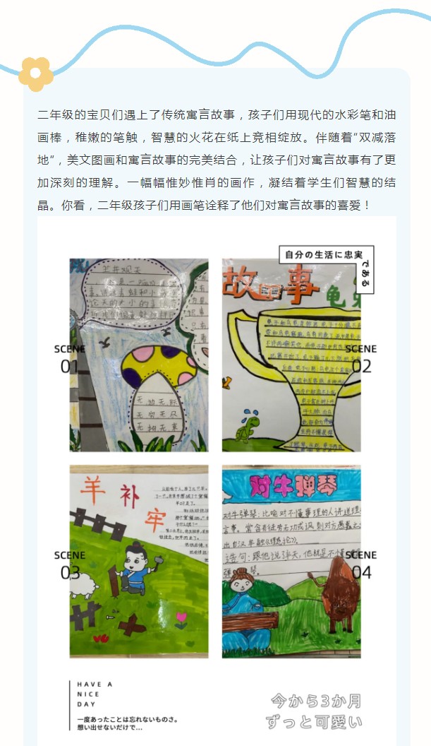 為落實“雙減”政策,激發(fā)學生學習語文的樂趣,讓學生的學習生活更加豐富多彩,安陽市飛翔學校(小學部)全體語文老師精心策劃了富有趣味性、層次性的創(chuàng)意作業(yè)。在豐富多彩的創(chuàng)意作業(yè)中,讓學生感受到學習的快樂,進一步提高學生的綜合實踐能力,也更好地為他們提供自主學習、自由探索的發(fā)展空間,讓學生真正成為學習的小主人!