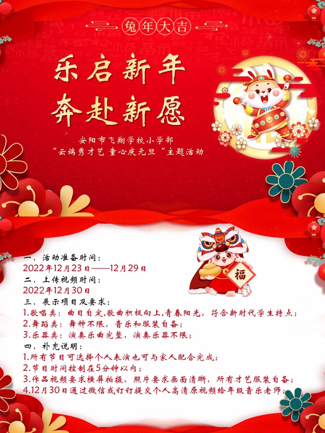 樂啟新年 奔赴新愿——安陽市飛翔學校小學部“云端才藝秀 童心慶元旦”主題活動紀實