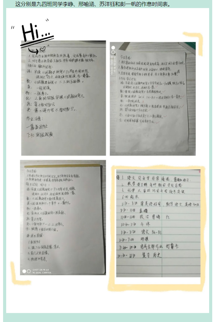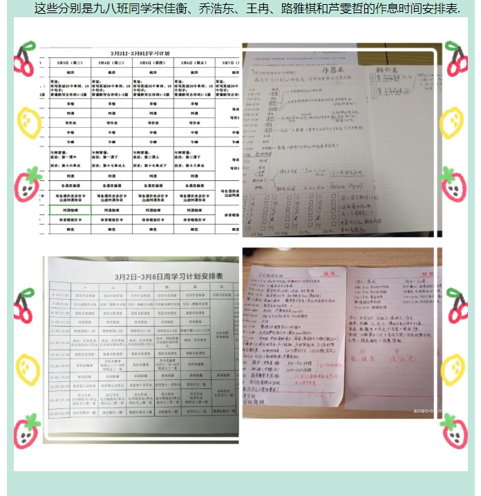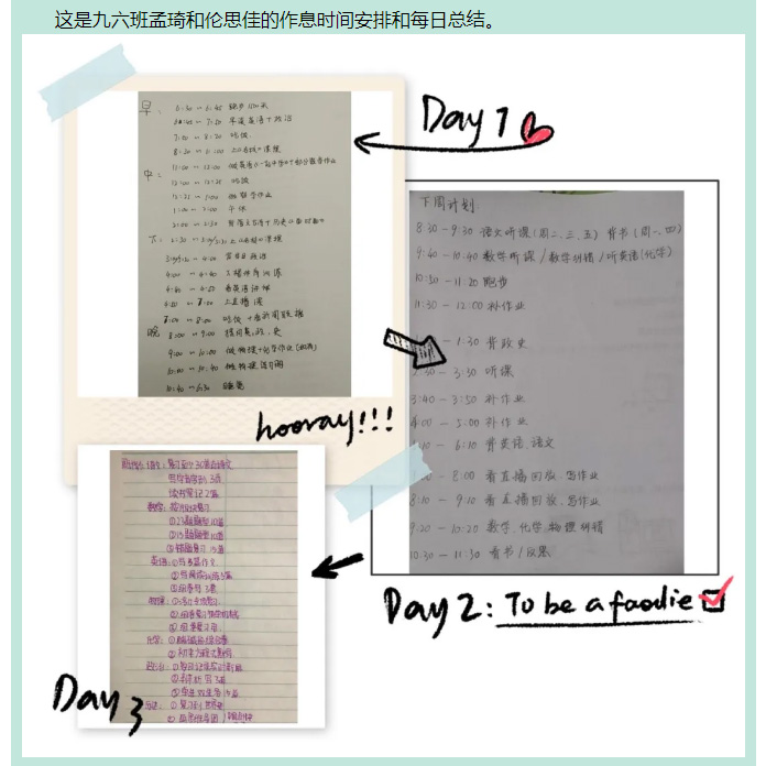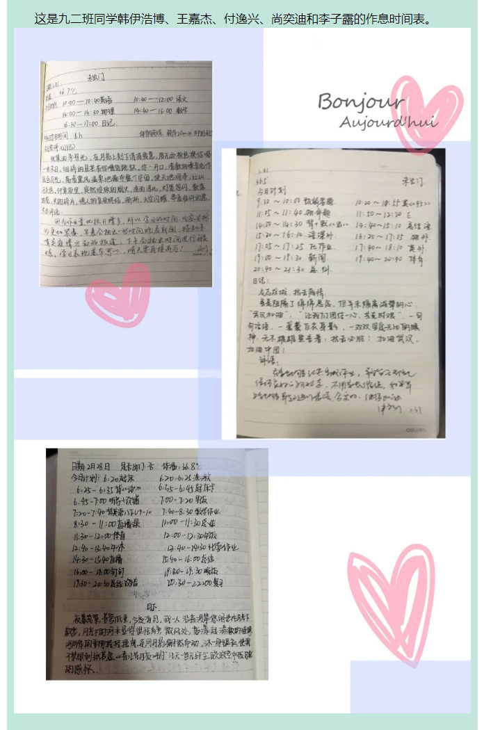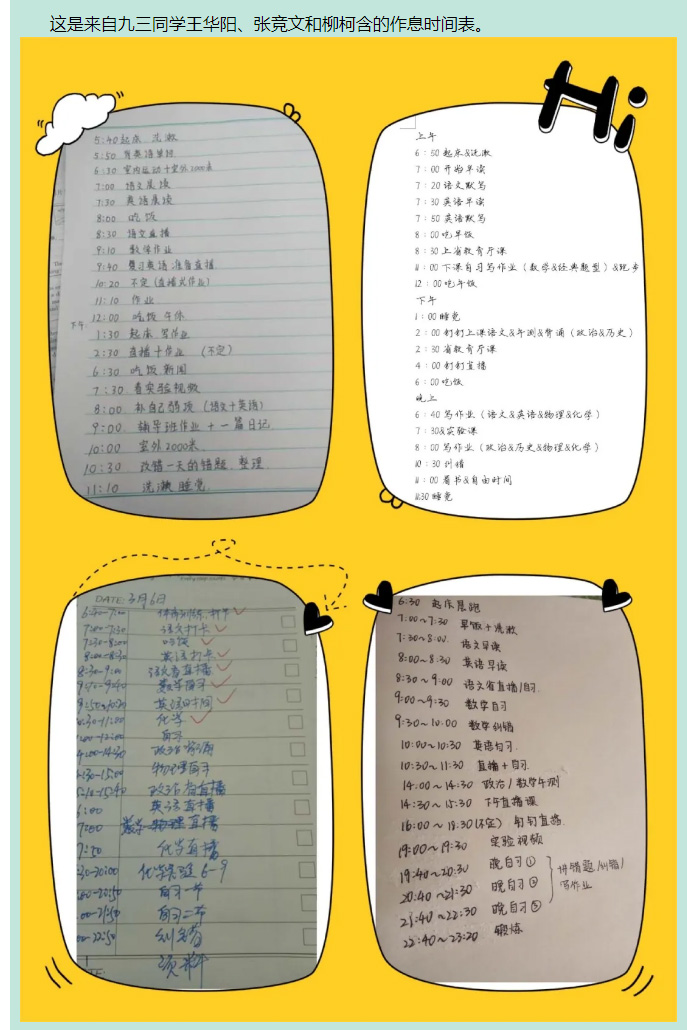 戰“疫”中的飛翔學子之篇十三——九年級優秀學生作息時間展