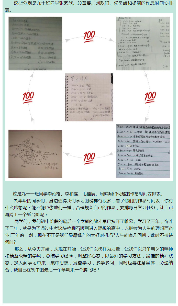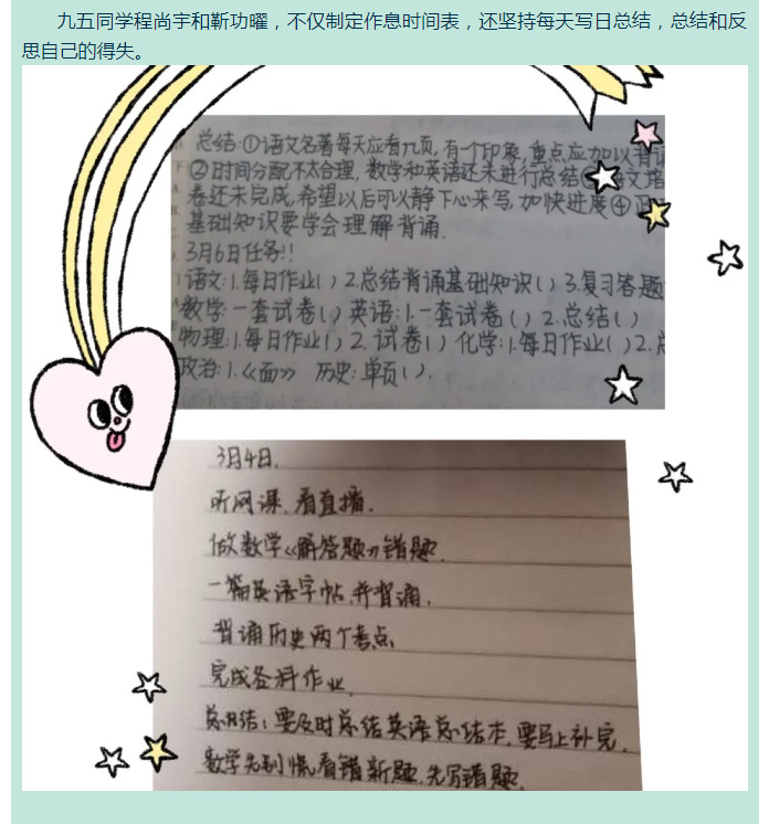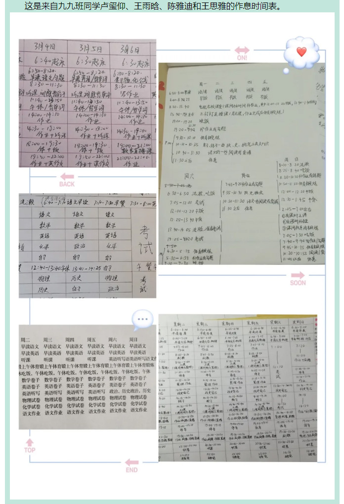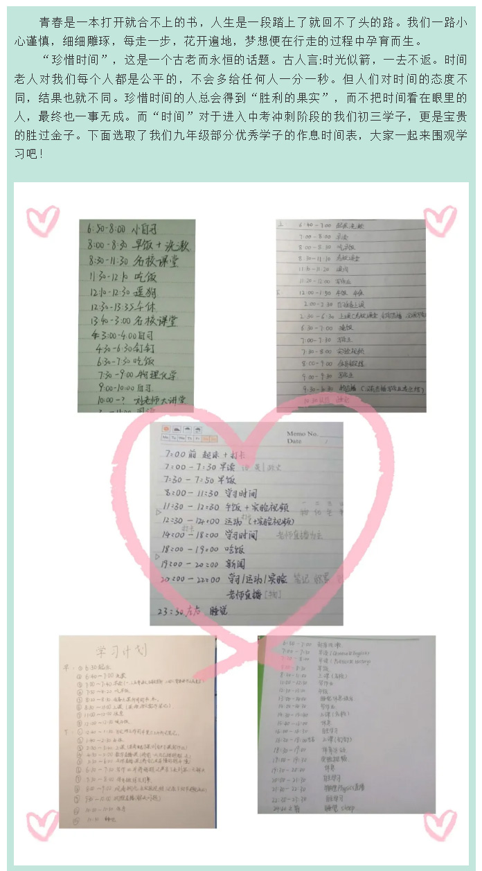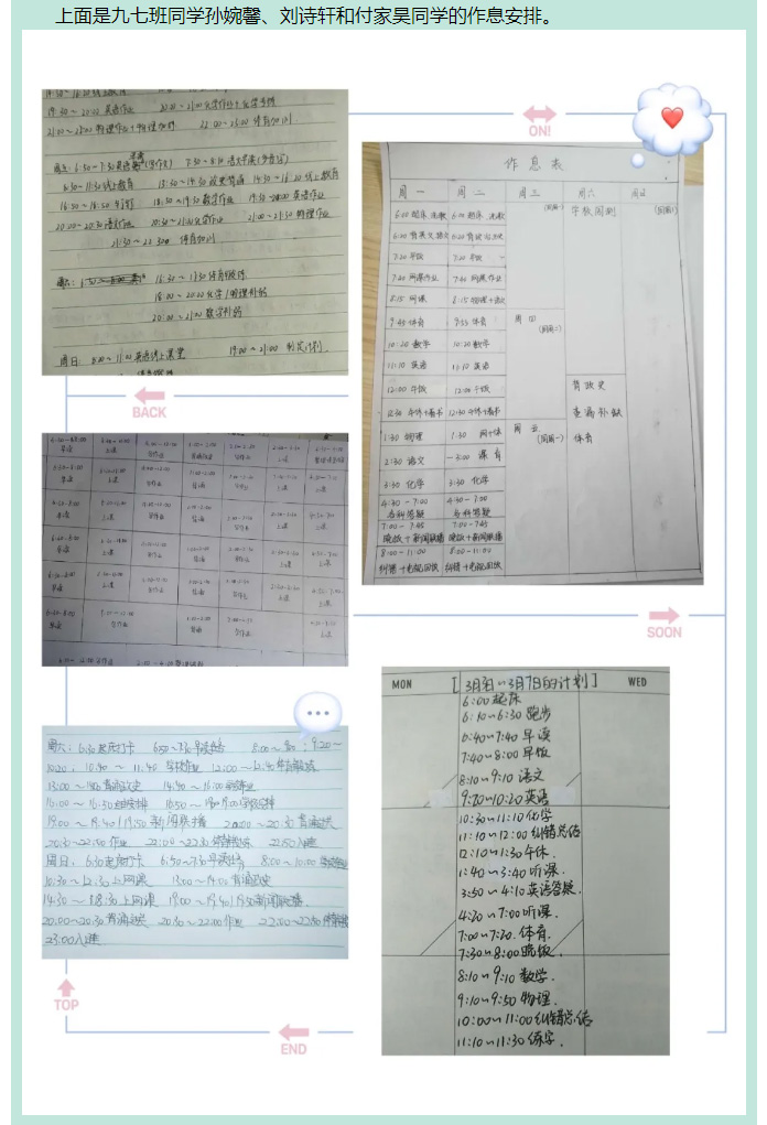 戰“疫”中的飛翔學子之篇十三——九年級優秀學生作息時間展